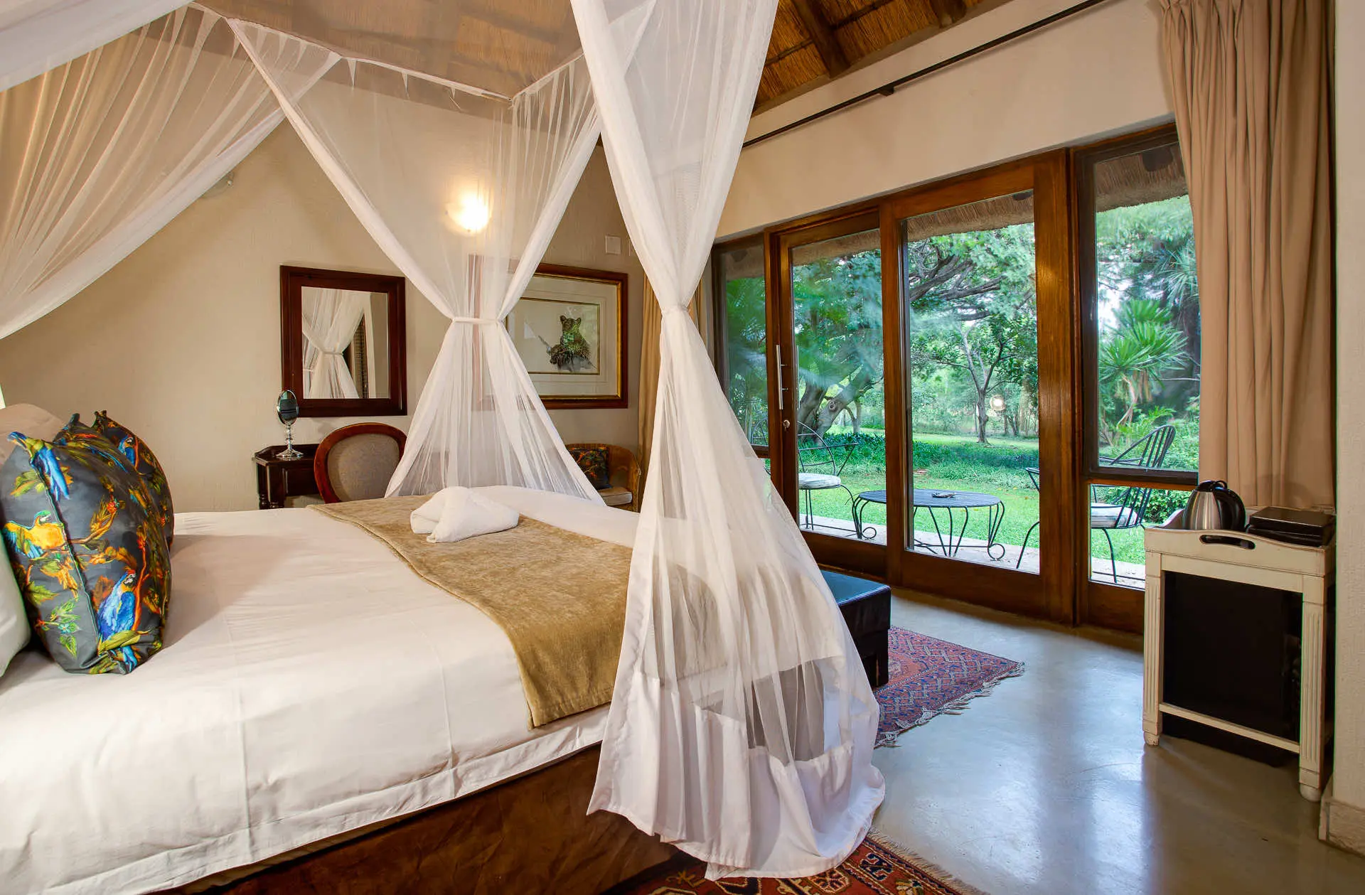 You will spend 4 days of magic at Khaya Ndlovu lodge, that has been privatised for your retreat. All room are different. Beds are very comfortable, while bathrooms are separated from the main bedroom.